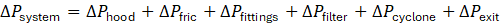 לחץ סטטי כולל של המערכת הוא סכום הרכיבים להלן (בפסקל, Pa):